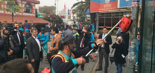 Tanıtımdan sonra, 40 kişiden oluşan Afiş Savar Timi, Üsküdar sokak ve caddelerinde temizliğe başladı. Basın mensuplarının karşısında ilk kez denenen cihaz oldukça verimli sonuç verdi.