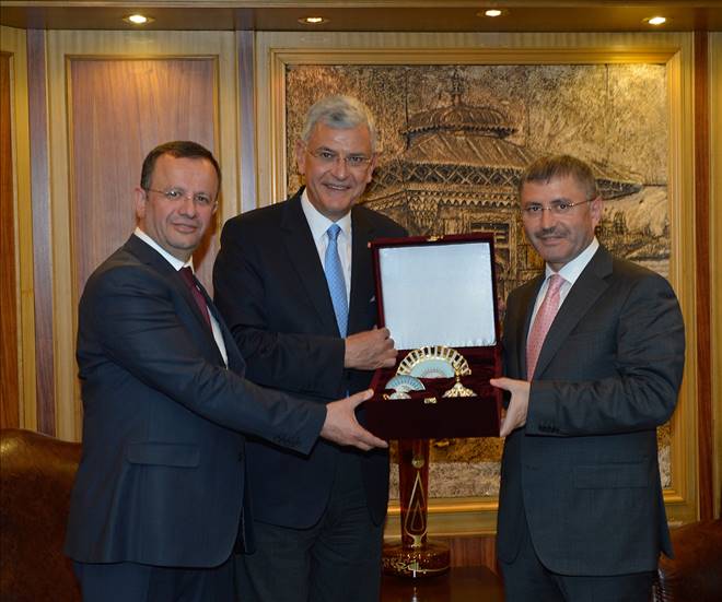 Makamda bir süre kalan Bakan Volkan Bozkıra Başkan Hilmi Türkmen de ziyaretten duyduğu memnuniyeti dile getirerek teşekkürlerini iletti.Başkan Türkmen, Avrupa Birliği Bakanı Volkan Bozkır`a sohbet sonrası Üsküdar temalı bir vazo hediye etti.