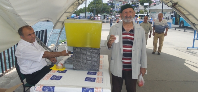 Kışın soğuktan üşüyen vatandaşlara sıcak çorba ikram eden Üsküdar Belediyesi, aynı hassasiyetini yazın sıcaktan bunalanlara limonata ikram ederek göstermeye devam ediyor. Üsküdar Belediyesi?nin başlatmış olduğu limonata ikramı, özellikle hava sıcaklığının en çok hissedildiği öğlen saatlerinde başlıyor ve akşam saat 18.00?e kadar devam ediyor. Ramazan ayında kurulan modern iftar çadırının 3 farklı noktasında, günde ortalama 20 bin bardak limonata ikram ediliyor. Buz gibi limonatadan içerek serinleyen vatandaşlar memnuniyetlerini, Belediye Başkanı Hilmi Türkmen?e teşekkür ederek dile getirdi. Üsküdar Belediyesinin limonata dağıtım hizmeti  yaz sonuna devam edecek.