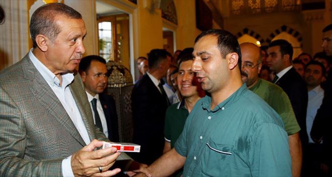 Cumhurbaşkanı Erdoğan, bayram namazı çıkışı vatandaşlarla bayramlaştı. Erdoğan bayramlaştığı vatandaşları sigara konusunda uyarmayı ihmal etmedi.
