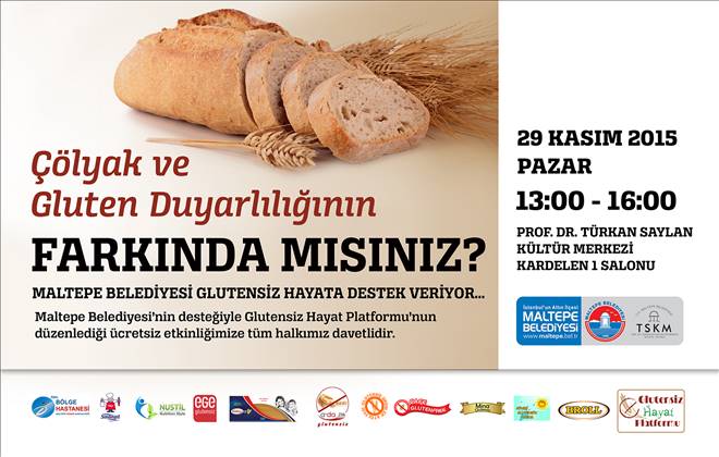 Çölyak ve Gluten Duyarlılığının Farkında mısınız? konulu etkinlik, Maltepe Belediyesi ve Glutensiz Hayat Platformu işbirliğiyle 29 Kasım pazar, 13.00-16.00 saatleri arasında Maltepe Belediyesi Prof. Dr. Türkan Saylan Kültür Merkezinde gerçekleştirilecek. Glutensiz Hayat Platformunun hazırladığı 9 maddelik sözleşme ile Maltepe Belediyesi, Türkiyede ilk kez Çölyak Dostu Belediye ilan edilecek. Ardından, Glutensiz Hayat Platformu Sözcüsü Tülin Ünalın moderatörlüğünde bir panel düzenlenecek. Panele, Glutensiz Hayat Platformu Başkanı Prof. Dr. Turgut Göksoy, Dr. İlknur Şengül Akbulut, Gastroentolog Uzman Dr. Hakan Güveli, Diyetisyen Dr. Hilal Batmaz konuşmacı olarak katılacak. Etkinlikte, sanatçı Hasan Karayol da konser verecek.