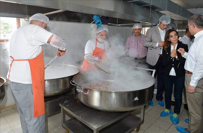 Üsküdar Belediyesi’nin Selimiye tesislerindeki aşevinde yapılan çalışmaları yerinde inceleyen Başkan Hilmi Türkmen, iftar yemekleri hakkında yetkililerden bilgi aldı. Başkan Türkmen, aşçılardan kepçeyi alarak yemekleri karıştırmayı da ihmal etmedi.