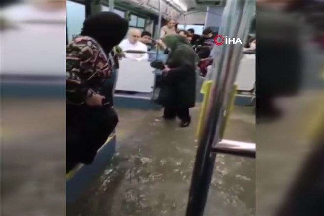 İstanbul´da etkili olan sağanak, yaşamı olumsuz etkiledi. Üsküdar´da etkili olan yağış sonrası içi yolcu olan İETT otobüsünü sel bastı. O anlarda panikle kaçışan yolcular cep telefonu kamerasına yansıdı.