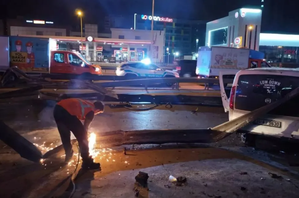 Kartal'da aşırı hızlı seyretmekte olan hafif ticari araç, sürücüsünün direksiyon hakimiyetini kaybetmesiyle önce bariyerlere, sonra da park halindeki taksiye çarptı. Kaza sonucu 1'i ağır olmak üzere 4 kişi yaralandı.