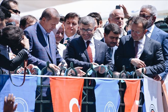 Konuşmasında, “Ya Rab, bizleri ezansız bırakma, bizleri mescitsiz bırakma” duasında bulunan Cumhurbaşkanı Erdoğan, duasına ‘amin´ diyerek mukabelede bulunanlara hitaben, “İşte sizler bu dualarınızla, bu gayretlerinizle inanıyorum ki ülkemiz dünyada örnek yerini koruyacaktır. El ele vereceğiz, bir olacağız, iri olacağız, diri olacağız, ama birbirimizi Allah için sevecek, kardeş olacağız, hep birlikte Türkiye olacağız diyorum” diye konuştu.