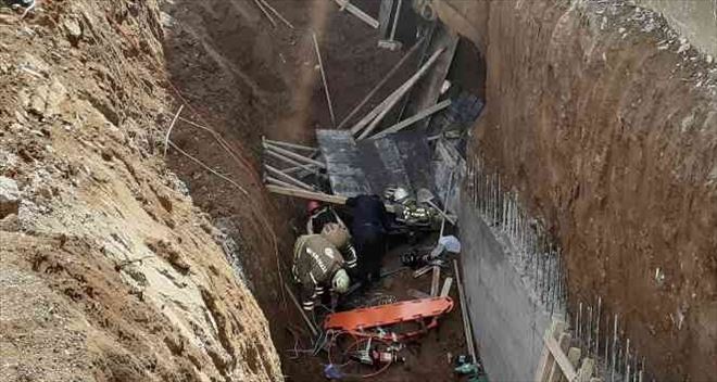 Şantiye personeli, 'Demirci çalışırken toprak kaymış. Bir sıkıntısı yok. Hastaneye kaldırdılar' dedi.
