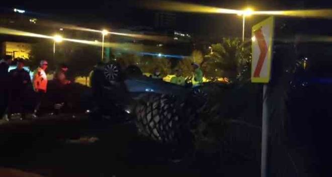 İçerisinde 6 kişinin bulunduğu otomobil takla atarken, otomobilin çarptığı palmiye ağacı kırılarak devrildi. Kazada 4 kişi yaralandı.