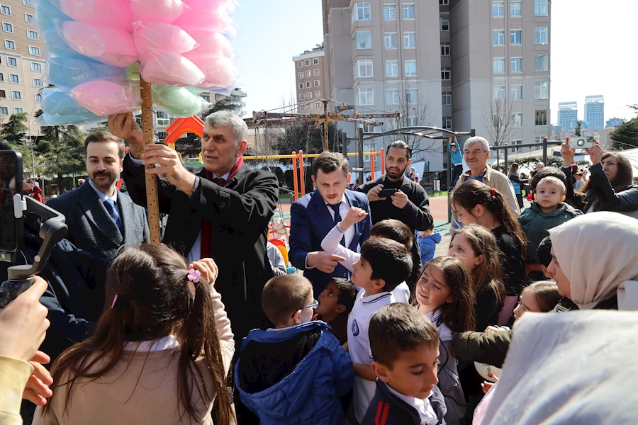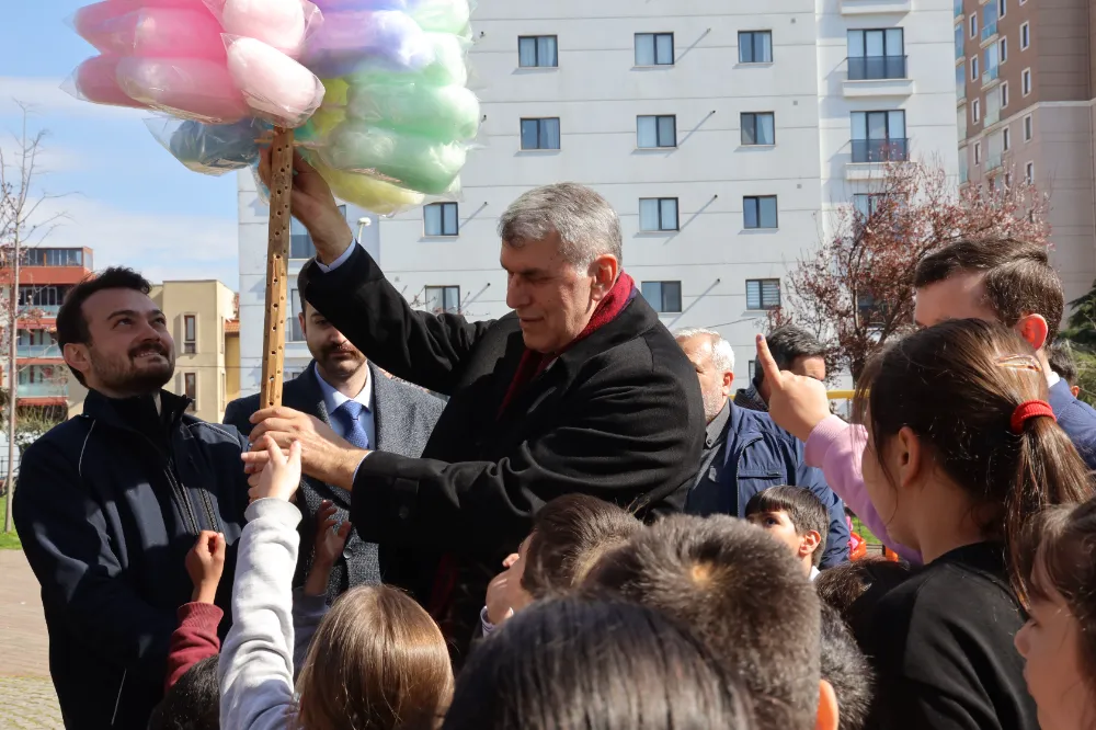 Pazar alanının hemen yanında bulunan bir parka giden Kadem Ekşi, çocukların ilgisiyle karşılaştı. Miniklere pamuk şeker ve balon hediye eden Ekşi, birlikte fotoğraf çektirdi.