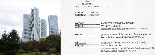 Kadıköy Belediyesi ekipleri tarafından tespit edilen kaçak inşaatla ilgili işlem yapılmış ve bu kusurların giderilmesi istenmişti. Belediye tarafından yapılan açıklamada Taşyapı´nın herhangi bir işlem yapmadığı, belediye yerine iskân için Çevre ve Şehircilik Bakanlığı´na başvurduğu belirtildi. Bakanlıktan alınan iskân ruhsatına itiraz eden Kadıköy Belediyesi konuyu yargıya taşıdı. istanbul Bölge İdare Mahkemesi 4. Dava Dairesi´nde görülen davada mahkeme belediyenin haklılığına hükmederek yürütmeyi durdurma kararı verdi. İstanbul 3. Bölge İdare Mahkemesi´nde görülen davada Taşyapı´nın iskânın iptal edilmesine karar verildi. Mahkemenin 9 bin metrekare inşaatın kaçak olduğuna karar vererek iskânı iptal ettiğini belirten Aykurt Nuhoğlu, “Ortada Kadıköy Belediyesi tarafından yapılan bir yanlışlık yok. Kaçak inşaat var. Mahkemenin bu kararıyla bizim tazminat davası kararına itirazımız da kabul edilecektir. Bu süre içinde haciz işleminden dolayı kamu hizmetlerinde herhangi bir aksama olursa bununla ilgili de yasal işlem başlatacağız. Bu ülkede hiç kimsenin bize gözdağı vererek yurttaşlarımızın hakkını gasp etmesine izin vermeyeceğiz” dedi.