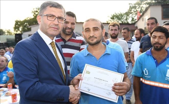 Belediye Başkanı Hilmi Türkmen, konuşmaların ardından eğitimlerini tamamlayan belediye çalışanlarına sertifikalarını dağıtarak, çalışanları ile birlikte hatıra fotoğrafı çektirdi.