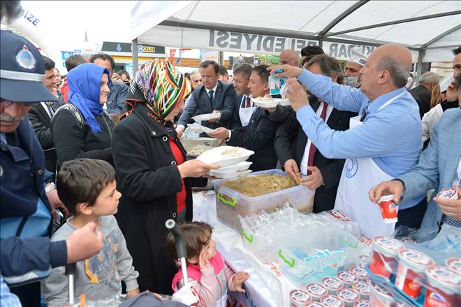 Protokol konuşmalarının ardından alanı dolduran binlerce davetli, 2 ton pirinçle pişirilen Tosya usulü etli pilava ve bunun yanında ikram edilen kaşık helvasına ulaşabilmek için uzun kuyruklar oluşturdular. Üsküdar Belediye Başkanı Hilmi Türkmen de önlük ve eldivenlerini takıp vatandaşlara kendi elleriyle etli pilav dağıttı.